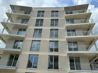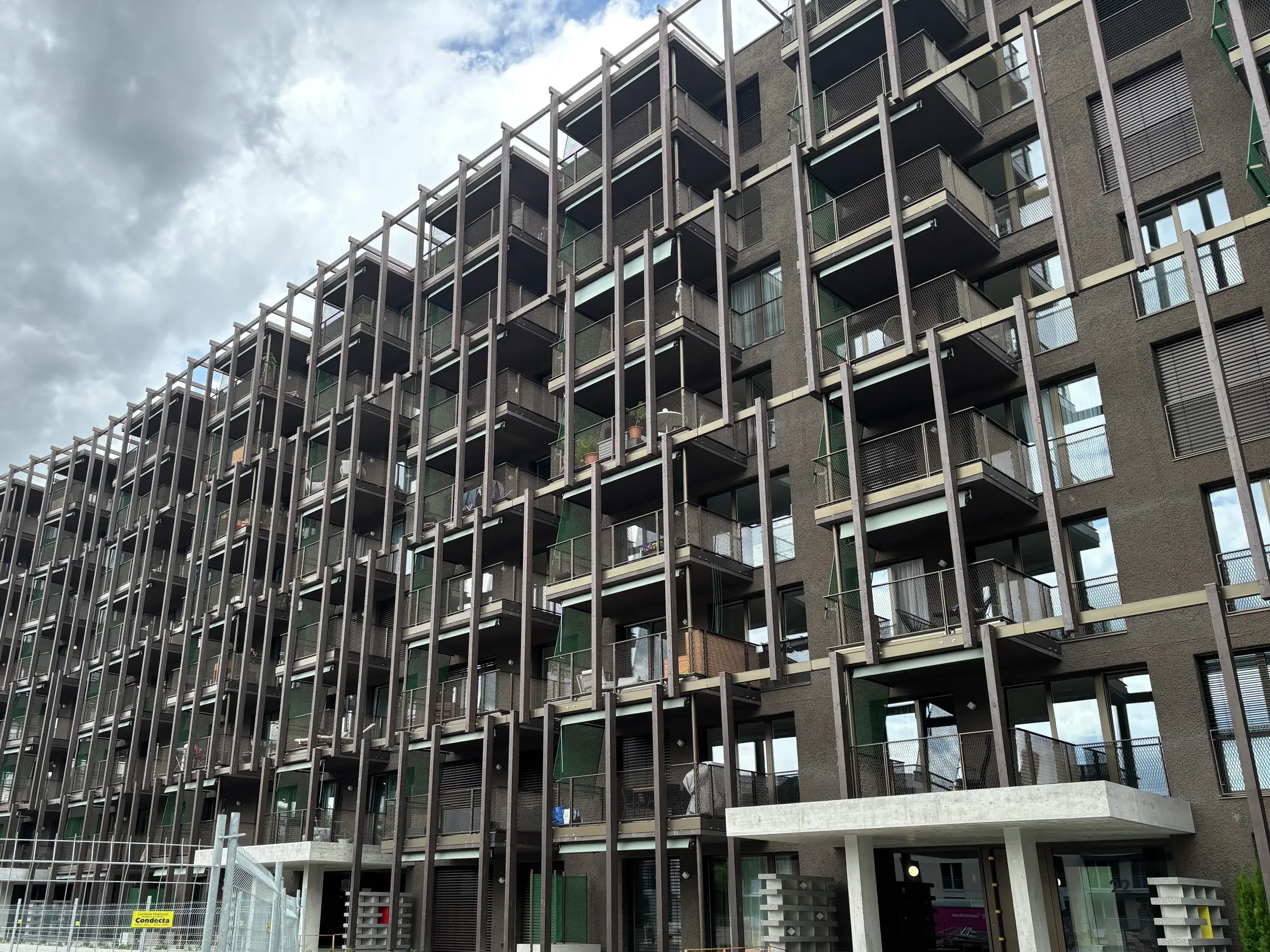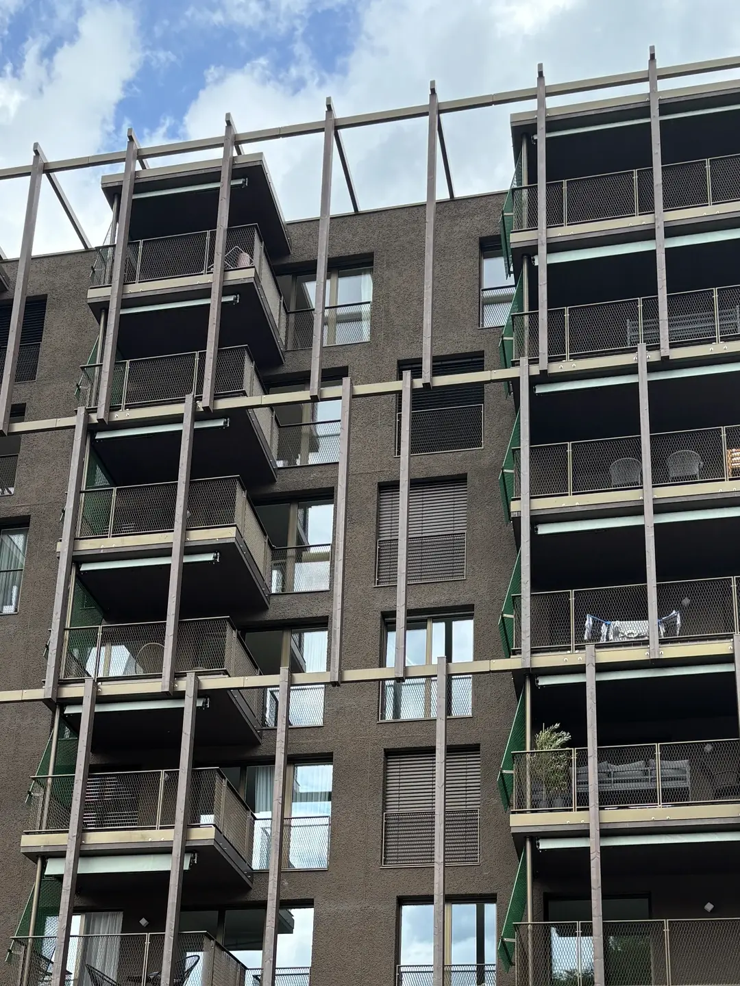 Les façades du complexe immobilier « Am Dych » à Münchenstein se distinguent par leur design moderne et architecturalement attrayant. Les trois bâtiments sont nichés dans un parc résidentiel verdoyant et s’intègrent parfaitement dans l'environnement du St. Albanteich. L’enduit de finition de la maison A est constitué d’un crépi à la truelle (granulométrie 10–12 mm et 4–6 mm) recouvert d’une peinture pour façade Premium Dark dans la teinte brun coco. L’ensemble du complexe répond aux normes de durabilité les plus strictes, ce qui se reflète également dans le choix des matériaux et la conception de l’enveloppe du bâtiment.