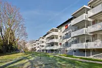 Cinq immeubles collectifs (maçonnerie Einstein) ont été construits selon la norme Minergie® avec 55 appartements locatifs modernes, situés à proximité d’une école maternelle et d’écoles.