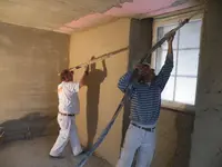 Dans cette ferme datant de 1848, la façade extérieure devait rester inchangée, mais la consommation d'énergie devait être réduite. L'enduit isolant Fixit 222 Aerogel a donc été utilisé pour réaliser une isolation intérieure fiable d'une épaisseur de 5 cm. L'enduit design Fixit 777 a ensuite été appliqué sur l'enduit isolant en tant que couche d'abrasion avec un grain de 1,5 mm.