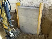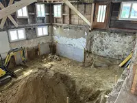 Lors de la transformation d’un bâtiment existant datant de 1820, les fondations existantes n’étaient plus suffisamment stables. Les anciennes fondations à l'intérieur du bâtiment ont été mises à nu, réalisé les coffrages pour les reprises en sous-œuvre ciblées et les a ensuite remplies avec du béton sec Fixit 507 Pump C30/37 et une granulométrie de 0-8 mm. Le résultat final est impressionnant : les reprises en sous-œuvre assurent une nouvelle stabilité à l’intérieur du bâtiment historique et permettent de réaliser les autres mesures de rénovation et de transformation prévues. Environ 70 tonnes de béton pompé Fixit 507 ont été utilisées pour ce projet.