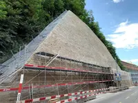 Pour la rénovation du mur de soutènement de 70 m de long et jusqu'à 22 m de haut à Schaffhouse, datant de 1921, on a utilisé le mortier pour pierre naturelle Fixit 562 avec trass, le béton projeté sec Fixit 527 A et le mortier de remplacement de pierre Fixit 524 SpC. Grâce au savoir-faire des tailleurs de pierre, le remplacement des pierres a été adapté aux contours naturels des pierres environnantes afin de créer un ensemble harmonieux.