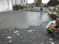 Le nouveau quartier Glasi est bordé d'environ 1 800 m² de pavés en pierre naturelle. Nos produits classiques ont été utilisés pour la réalisation de ces pavages de haute qualité : mortier pour pierre naturelle Fixit 583, mortier de scellement Fixit 585 (Quick), mortier de pose de regards Fixit 587 Quick et béton concassé au trass Fixit 582/8.