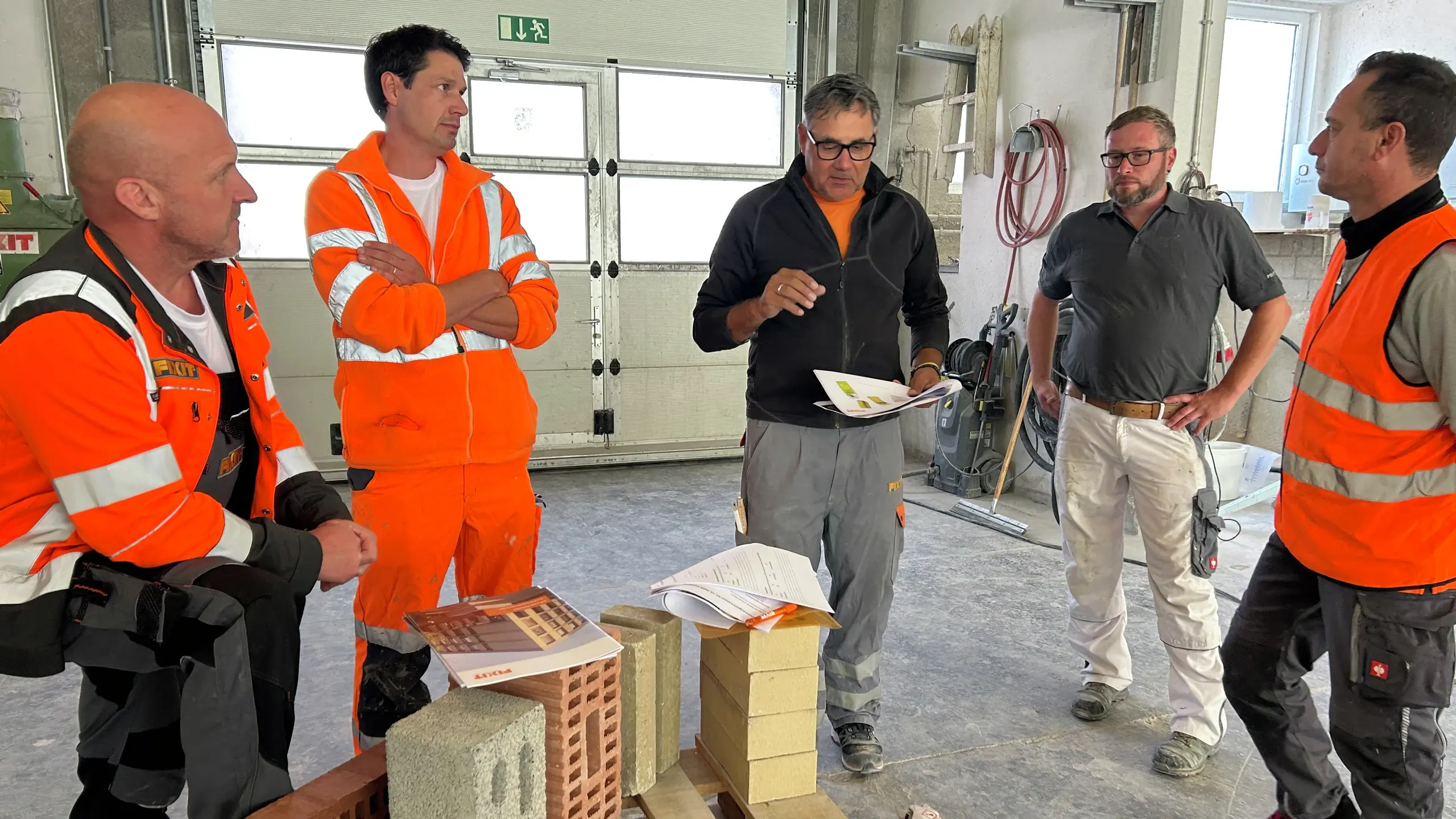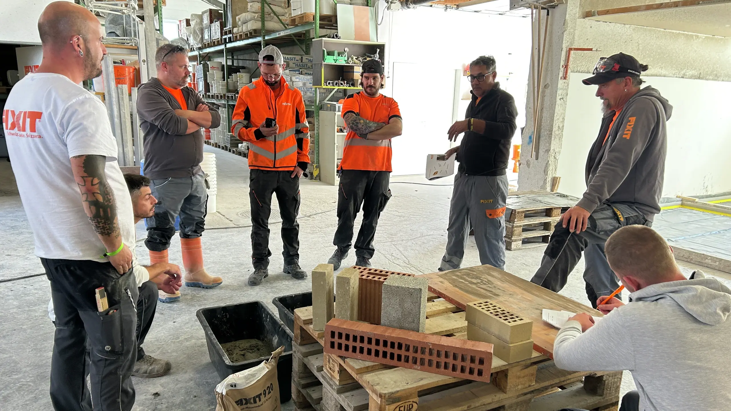 Im theoretischen Teil wurden neue Informationen und besondere Baustellenanwendungen besprochen. Im praktischen Teil ging es zum einen um die Anwendung und die Möglichkeiten von Fixit Steinersatz-Spritzmörtel sowie um Mauersteine und den Fixit Mauermörtel.