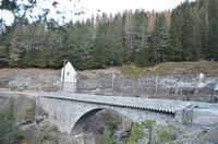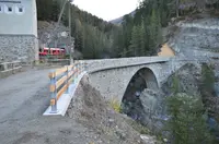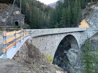 Die 57 Meter lange und einspurige Steinbogenbrücke reicht knapp 100 Meter über die Landwasserschlucht. An der Brücke wurden die kompletten Brüstungsmauern ersetzt und mit farblich angepasstem Fixit 583 Natursteinmörtel ausgemauert. An der gesamten Brücke wurden ausserdem die Fugen über insgesamt 600 m² Mauerwerksfläche abgedichtet.