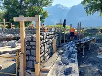 Bei der Brückeninstandsetzung an der Plessur in Litzirüti wurde das Mauerwerk teilweise saniert und teilweise neu gebaut – dazu wurde der Fixit 583 Natursteinmörtel zum Einsatz.