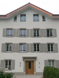 Dieses Einfamilienhaus aus den 1920er Jahren ist das erste Minergie-zertifizierte Gebäude der Schweiz, das mit Fixit 222 Aerogel Hochleistungsdämmputz energetisch saniert wurde. Um die Fensterleibungen beibehalten zu können, wurde der alte Putz komplett entfernt und anschliessend erfolgte der Putzaufbau mit dem Fixit 222 Aerogel Hochleistungsdämmputz. Zum Abschluss wurde die gesamte Fassade mit der Fixit 786 Si Silikat-Silikon-Überrollfarbe zweimal in einem dunklen Terrakotta-Ton gestrichen. Dank der geringen Schichtdicke des Fixit 222 Aerogel Hochleistungsputzes blieb das ursprüngliche Erscheinungsbild des Gebäudes erhalten.