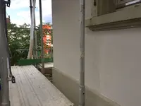 Bei dem historischen Gebäude «Barandun» wurde eine energetische Fassadensanierung ausgeführt. Dazu wurde der bestehende Grundputz entfernt, das darunterliegende Mauerwerk trocken gereinigt und die gesamte Fassade mit Ziegelrabitz vorbereitet. Direkt auf den Ziegelrabitz wurde der Fixit 222 Aerogel Hochleistungsdämmputz mit einer Schichtdicke von 3–5 cm aufgetragen. Im Anschluss folgte der Deckputz Fixit 733/734 Stucco, der mit der mineralischen Fixit 784 OF Sol-Silikatfarbe zweimal gestrichen wurde.