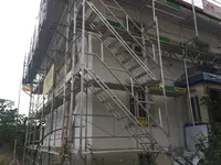 Das kleine Einfamilienhaus wurde energetisch saniert. Dazu wurde zuerst der Grund- und Deckputz entfernt. Im Anschluss erfolgte einer neuer Aufbau mit Fixit 211 Zementmörtelanwurf, Fixit 222 Aerogel Hochleistungsdämmputz (Schichtdicke 40 mm) und dem mineralischen Untergrundstabilisator Fixit 493. Darauf kam eine Netzeinbettung mit Fixit 223 Spezial-Einbettmörtel, ein Voranstrich und der Abrieb Fixit 730 mit einer 3–4 mm Körnung.