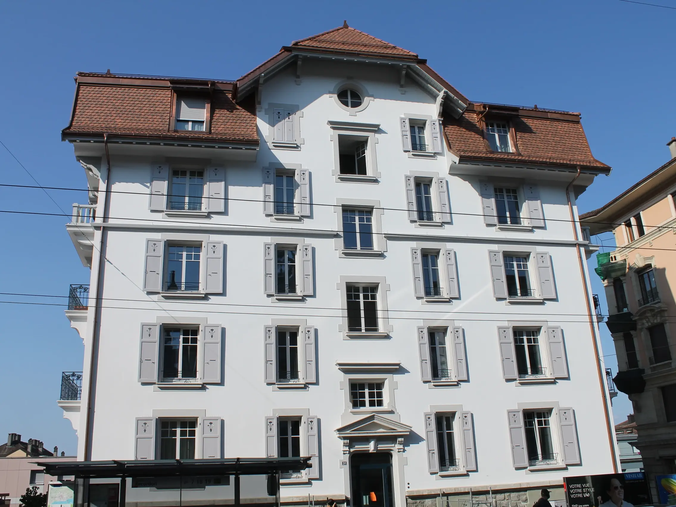 Beim Umbau konnten die Details der Sandsteinelemente an den Gebäudekanten sowie an den Fenstern erhalten werden, während gleichzeitig eine energetische Sanierung mit Steinwolledämmplatten erfolgte. Die Fassade wurde mit Fixit 746 Silikondeckputz aussen verputzt und zweimal mit Fixit 786 Si Silikat-Silikon-Überrollfarbe gestrichen. Im Innenbereich kamen diverse Fixit Grundputze zum Einsatz.