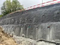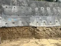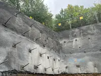 Für das geplante Mehrfamilienhaus in Rifferswil musste aufgrund des Hangs die Baugrube entsprechend der Vorgaben gesichert werden. Eine Fläche von rund 815 m² wurde daher mit insgesamt 355 Tonnen Fixit 526 A Baugrubengunit und einer Auftragsstärke von 15–20 cm auf die Wand fachgerecht abgesichert.