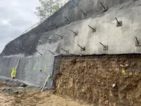 Für den Steinschlagschutz in der Nähe des historischen Kupferbergwerks Surmin in Filisur wurden neue Betonmauern erstellt und die bestehende Stützmauer mittels Anker und dem Fixit 532 Ankermörtel gesichert. Im Anschluss wurde der Beton mit Natursteinen verkleidet.