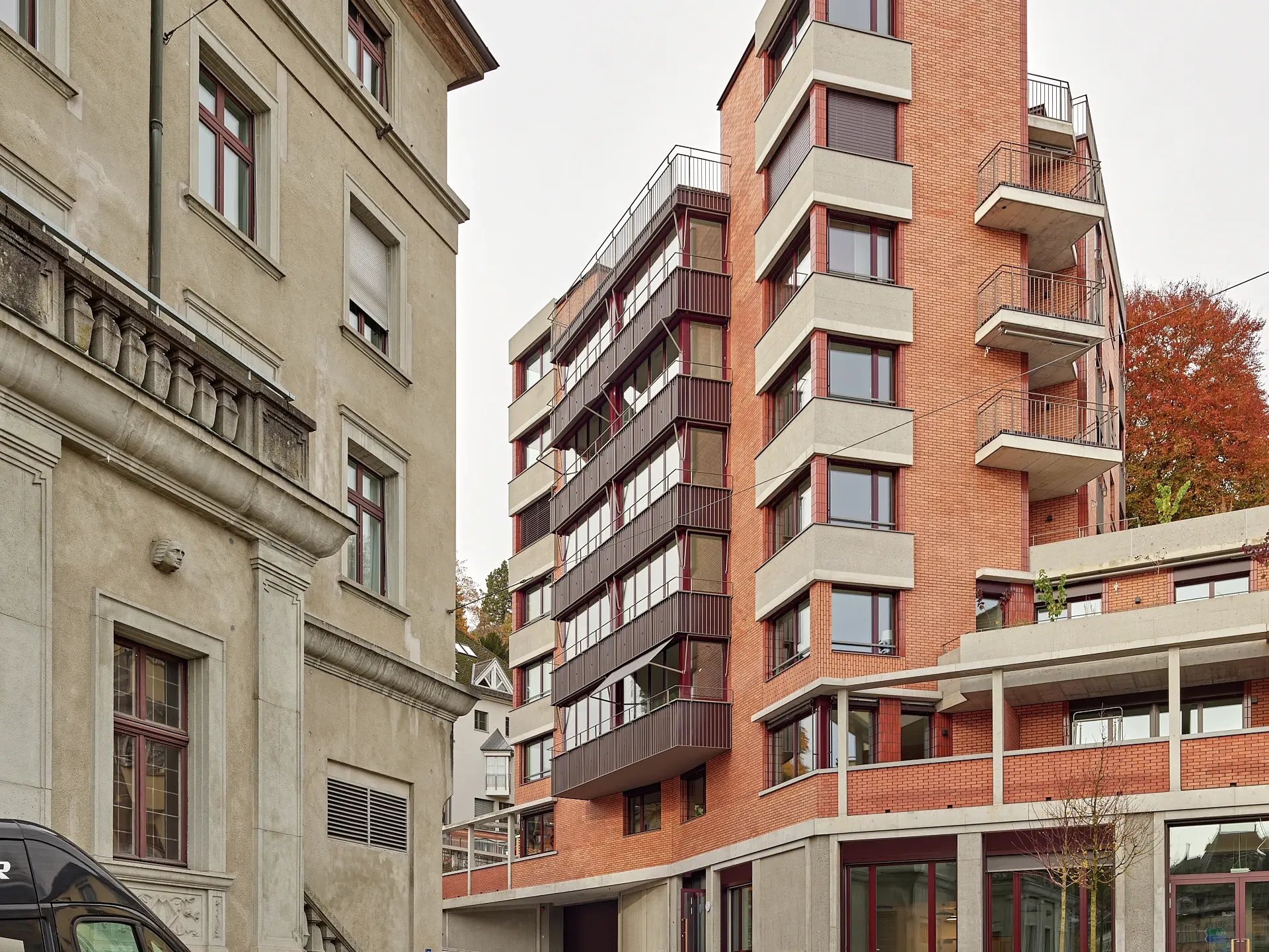 Im begehrten Bellerive-Quartier in Luzern entstand eine elegante Stadtvilla mit gemauerter Klinkerfassade und einem Kupferdach. Fixit durfte den Sichtmörtel Fixit 987 in beigeweiss liefern.