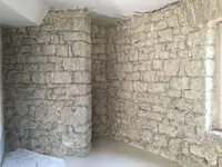 Der reformierte Pfarrsaal in Bassecourt sollte eine energetische Aufwertung erhalten. Dazu wurde der bestehende Innenputz entfernt und im Anschluss der Fixit 222 Aerogel Hochleistungsdämmputz mit einer Schichtdicke von 3 cm aufgetragen.