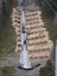 Für die Steinschlagschutz- und Lawinenverbauung der neuen Standseilbahn von Schwyz nach Stoos wurde unser Fixit 532 Ankermörtel verwendet. Die Standseilbahn ist die steilste der Welt und überwindet über 47 Grad maximale Steigung.