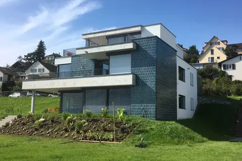 Fünf Mehrfamilienhäuser (Einsteinmauerwerk) wurden nach Minergie® Standard mit 55 modernen Mietwohnungen gebaut – unweit von Kindergarten und Schulen gelegen.
